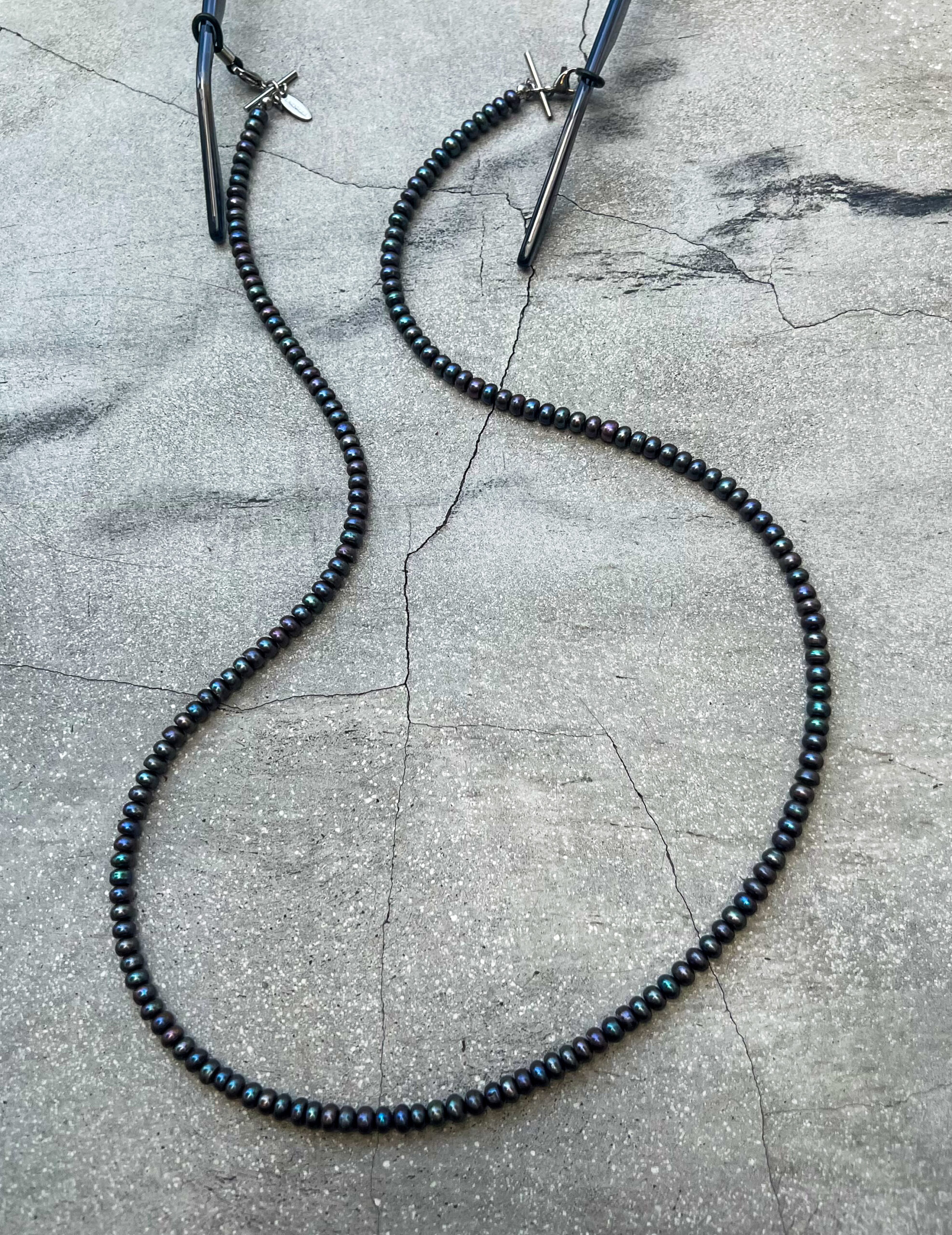 Ariel chain is inspired by the beauty of the oceans of Indonesia. Varying natural pearls of different sizes and colors. Attaches to any glasses, sun glasses or face mask. Multifunctional as a necklace.